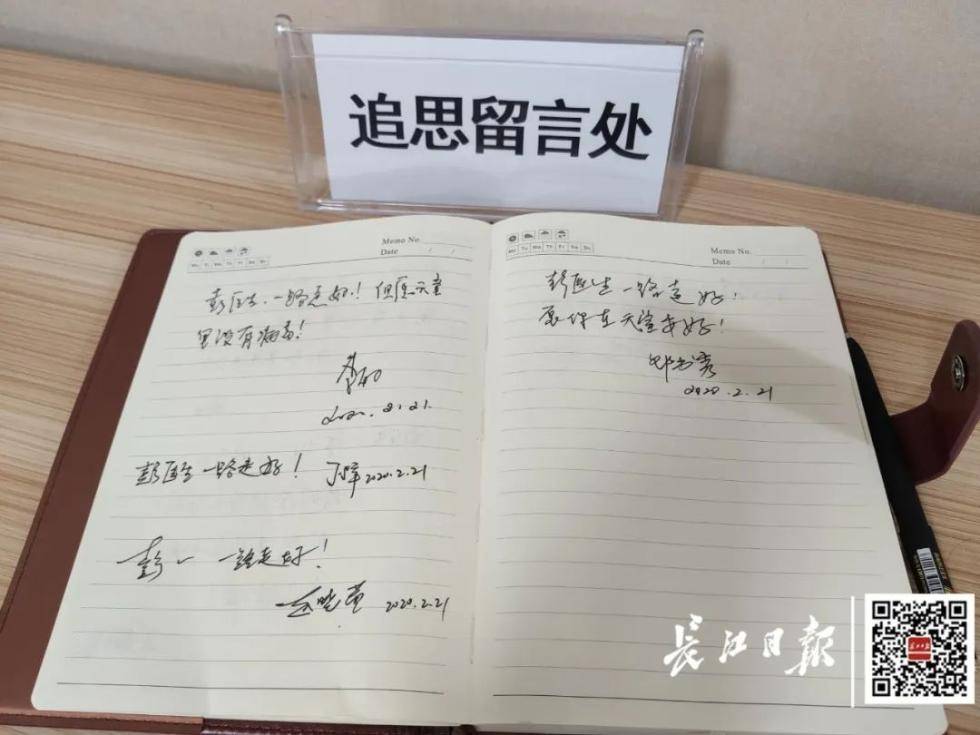 遗像前,已有20多位医务人员送来了一束束鲜花。一旁的追思留言本上,院长刘承云寄语,“推婚期,上战场,显医者责任担当;擦干泪,战病魔,展江南抗疫形象。”也有人写道,“吃了你的喜糖,却没能参加你的婚礼……希望天堂的你没有病痛,依然阳光,我们还会继续奋斗在一线,与病魔斗争到底!”读来让人泪崩。
