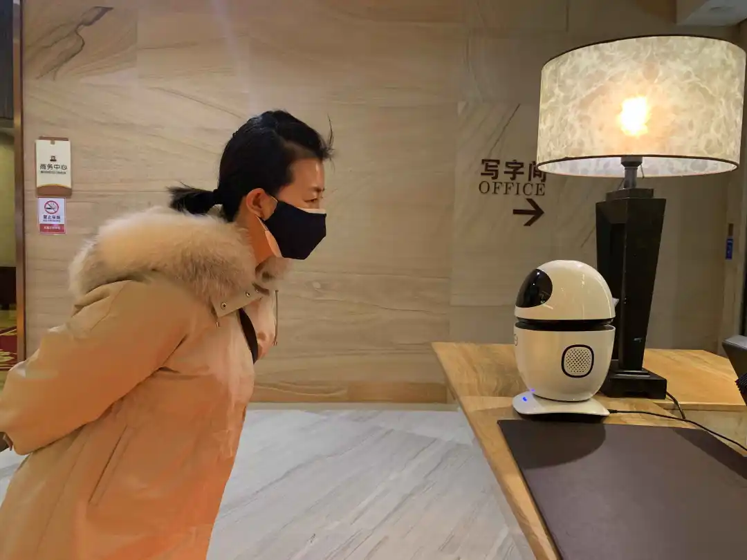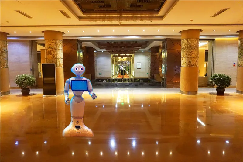 “您好,我叫北北,有什么能帮到您的吗?”每当顾客走进酒店大堂,一个周身雪白、调皮帅气的机器人,便会挥动着呆萌的小手,操着标准的普通话,热情地迎上来打招呼。她就是酒店的头号礼宾员“北北”。