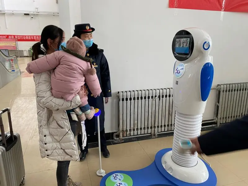 德令哈站使用人工手持测温和测温机器人测温两种测温方式,在进出站口和验票口等关键处所安排专人加强旅客乘降引导,组织旅客保持距离,有序排队进出车站。