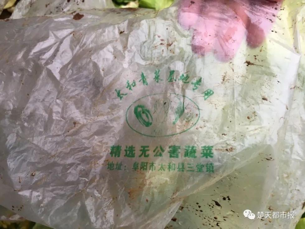 从蔬菜专用包装袋上可以看到,这些青菜来自安徽阜阳市太和县三堂镇。