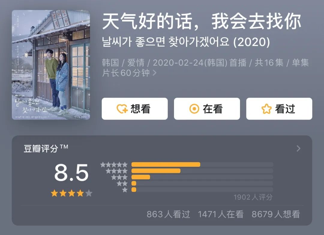 如同冬日必看剧《鬼怪》一般,《天气好的话,我会去找你》走的也是温暖治愈的纯爱路线。