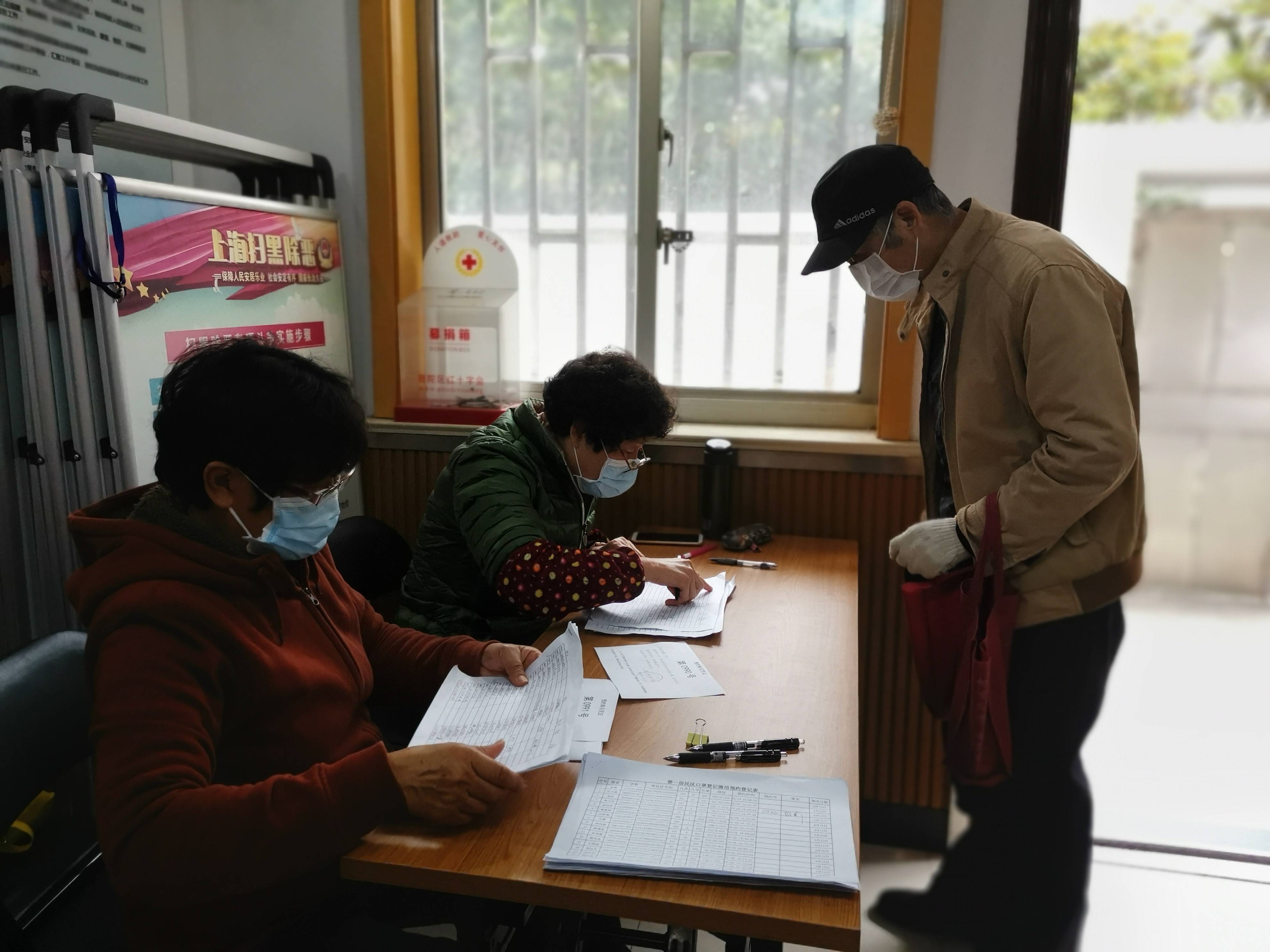普陀区石泉路街道管一居民区书记周振文自街道紧急部署启动防控疫情工作以来,已带领管一居委干部已连续苦战三个星期。居委包括他在内仅有8人,每人要负责280到300户居民的基础信息排摸、口罩预约登记,还要抽调人员支援门岗值守,工作量大。居委干部们每天忙到半夜,回到家就倒头睡了,次日早晨就又接着干。
