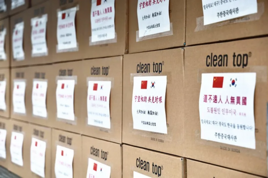 2月27日傍晚,中国驻韩国大使馆为大邱捐赠的2.5万多个医用口罩从首尔整装起运,帮助韩国人民抗击新冠肺炎疫情。