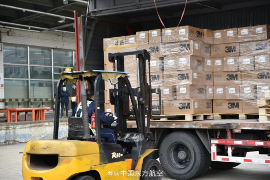 据中国东方航空官方微博消息,2日上午,航班已从上海浦东机场起飞,承载着上海市政府捐赠给韩国大邱市和庆尚北道地区的50万只口罩飞向韩国。