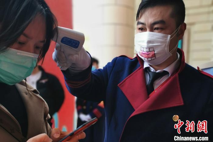 工作人员戴着“微笑”口罩迎客。 羊栋泽 摄
