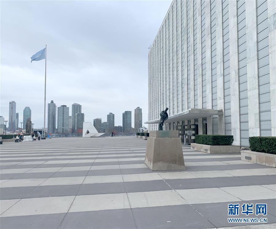 这是纽约联合国总部游客大厅外广场(3月10日摄)。 联合国秘书长发言人迪雅里克10日说,为应对新冠肺炎疫情,纽约联合国总部将暂停对公众开放,所有联合国游客观光活动也将暂时中止。