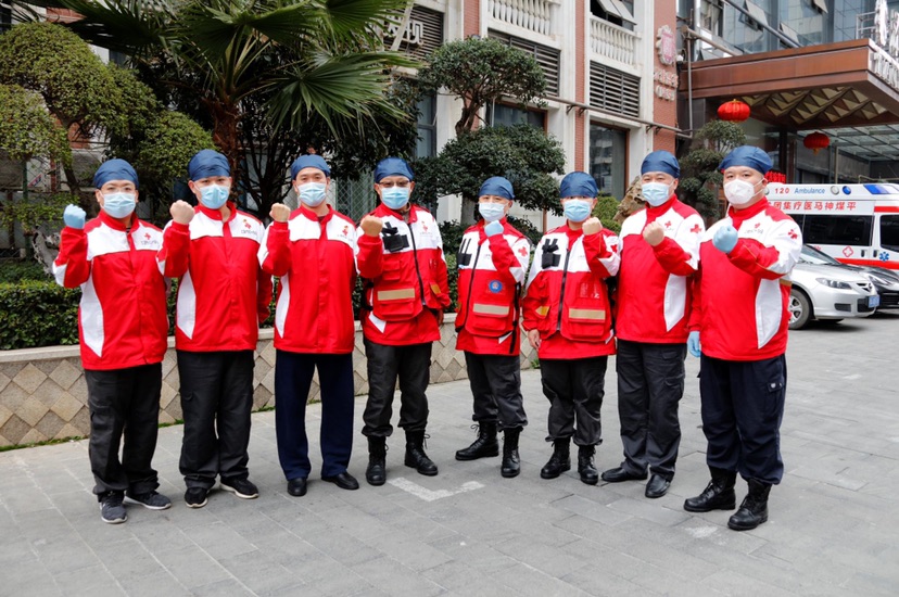 一个月前的晚上,来自上海市红十字医疗急救中心的8名救护车驾驶员在上海南站登上赴武汉的火车,他们是队长刘轶、队员薛凯华、孙俊、侯敏杰、阮盛、陆志刚、沈骏、曾杰。他们中年纪最大的陆志刚生于1972年,最小的孙俊刚过34岁生日。他们都是党员,都有着10年以上驾驶救护车的经验,大部分人还参加过非典、埃博拉病毒的病患转运。