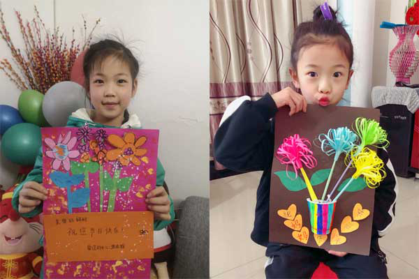 在向这些英雄致敬的同时,西郊小学少先队大队部号召队员们通过自己的方式向身边的女性亲人表达感恩之心,献出关爱之情,队员们纷纷行动起来,有的主动为妈妈分担家务,有的录视频说出最暖心的话,有的表演节目,还有的亲自动手制作了精美的节日贺卡。