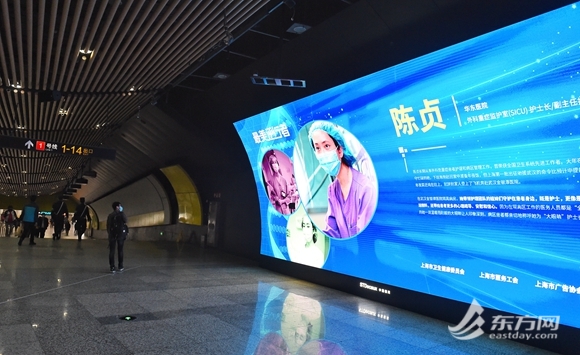 “从今年1月下旬开始,上海先后派出9个批次、1649名医疗队员驰援武汉,抗击新型冠状病毒。为了让广大市民能够真切地认识这些医务人员们,从他们的事迹中汲取精神力量,申通地铁在人民广场,徐家汇等站点内,对他们进行无间断地展示,希望能有更多市民了解疫情,走近英雄。”