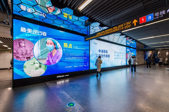 上海申通德高地铁广告有限公司副总经理范辉在接受东方网记者采访时表示,3月10日起,申通集团就策划就在人民广场、静安寺和静安寺等各大地铁站推出了主题为“最美逆行者”的公益宣传。此外,在疫情防控的每个时间节点,申通德高都推出了相应的防疫宣传广告。