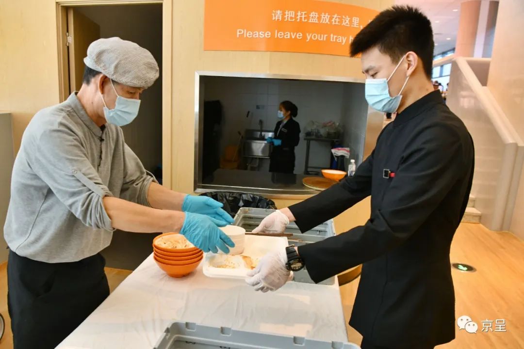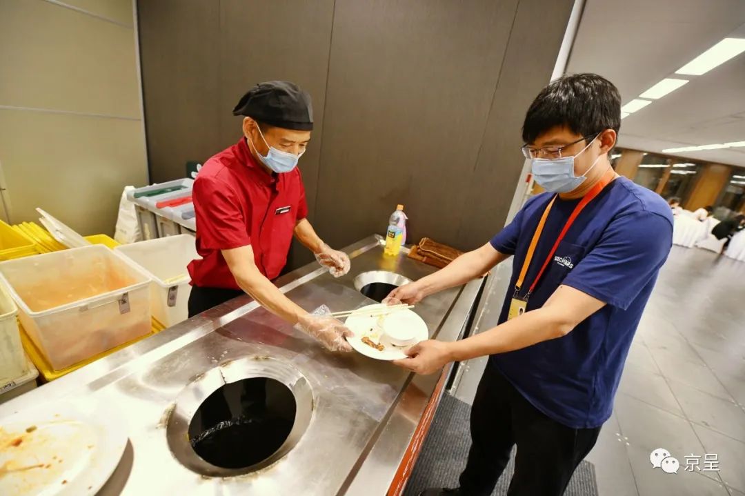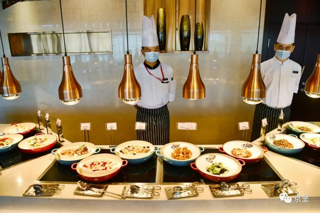 服贸会接待酒店国家会议中心酒店自助餐厅按需供应,减小餐盘,提倡节约。