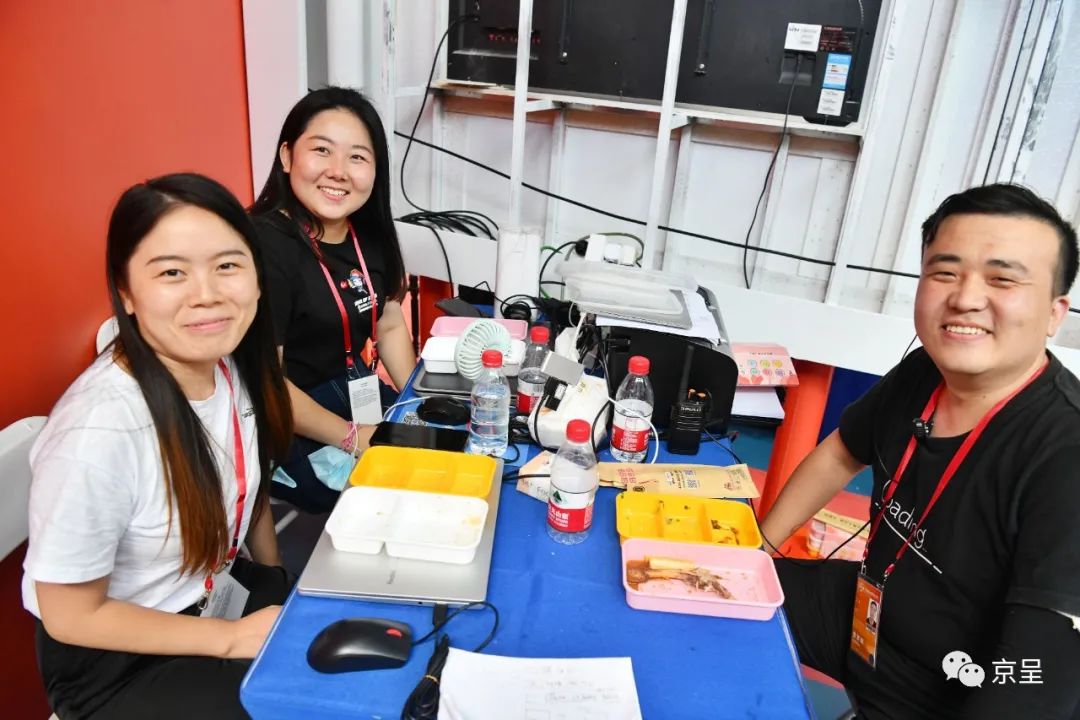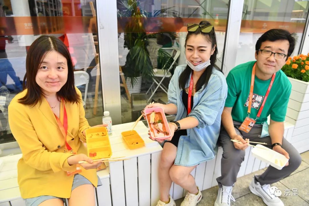 服贸会室外展区丰台文化展台工作人员盒饭午餐厉行节约,做到光盘。