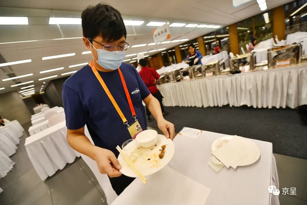2020年中国国际服务贸易交易会正在奥林匹克公园和国家会议中心进行,大量客商和市民参与到盛会之中。在服贸会期间,不少参会人员都要在现场就餐,京呈记者在现场观察发现,光盘行动效果显著。