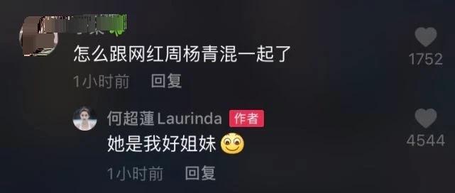 不过,留言里也出现了不和谐的声音,先是有人不客气地问何超莲:“怎么跟网红周扬青混在一起”,何超莲直接回答“她是我的好姐妹”,被赞够仗义。