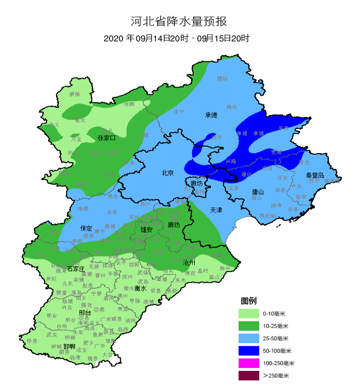 明天夜间到15日,全省阴有雷阵雨或阵雨,其中承德、唐山、秦皇岛、保定、雄安新区、廊坊、石家庄、沧州、衡水北部有中到大雨,个别点有暴雨。