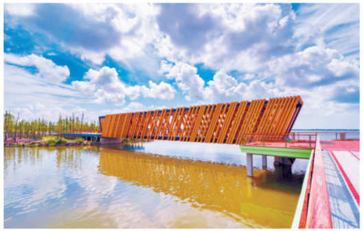 图片说明:D港桥“绿荷”,造型轮廓宛如荷花,边缘处翻飞上翘,恰似花瓣卷舒开合。