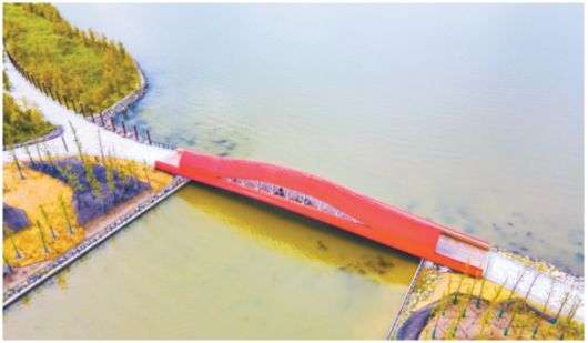 作为港城集团打造的临港“湖畔会客厅”重要组成部分,滴水湖环湖景观带的七座桥丰富了湖滨水岸线景观,并串联起滴水湖环湖景观带及分散于其中的美食运动娱乐等功能性空间,也给居民和游客通行带来了便利。
