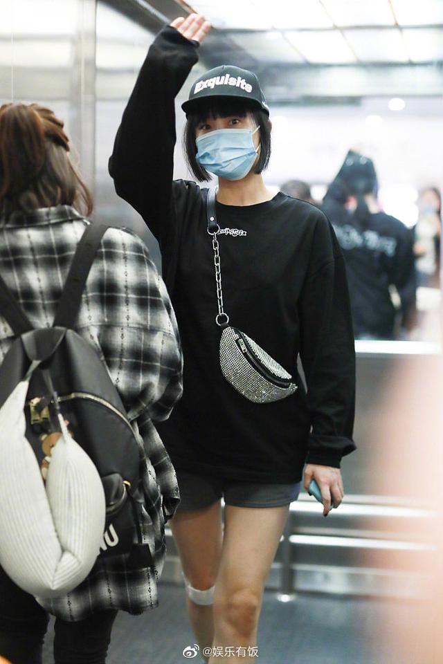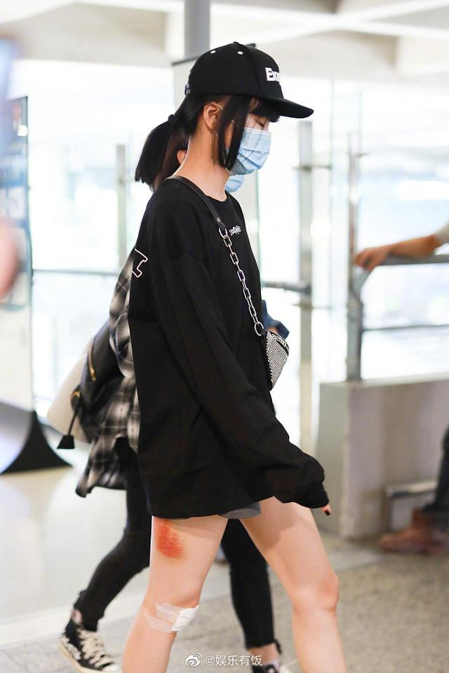 下面是黄龄最新的机场照,大腿外侧明显有擦伤的痕迹,膝盖上还包着纱布,看起来挺严重的。