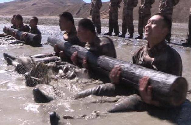 某边防团在海拔4600多米的西藏某地,空气含氧量不足海平面50%,最低气温达-10℃的恶劣气候中,开展了拉轮胎奔跑、扛圆木折返跑、抱圆木做仰卧起坐、侦察兵基础科目、近身格斗等训练。