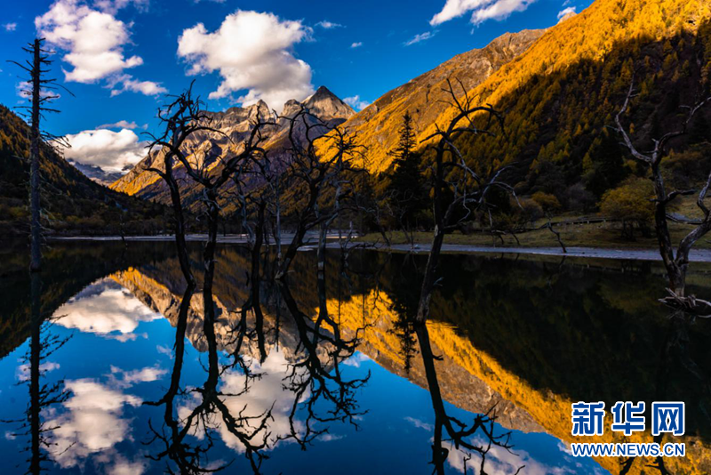 十月,四川省阿坝州小金县四姑娘山景区迎来了最美的赏秋旅游季,雪山、冰川、海子、针叶林、原始森林等在蓝天白云下变得色彩斑斓,层林尽染,已是一幅半山彩林半山雪的壮观景象。