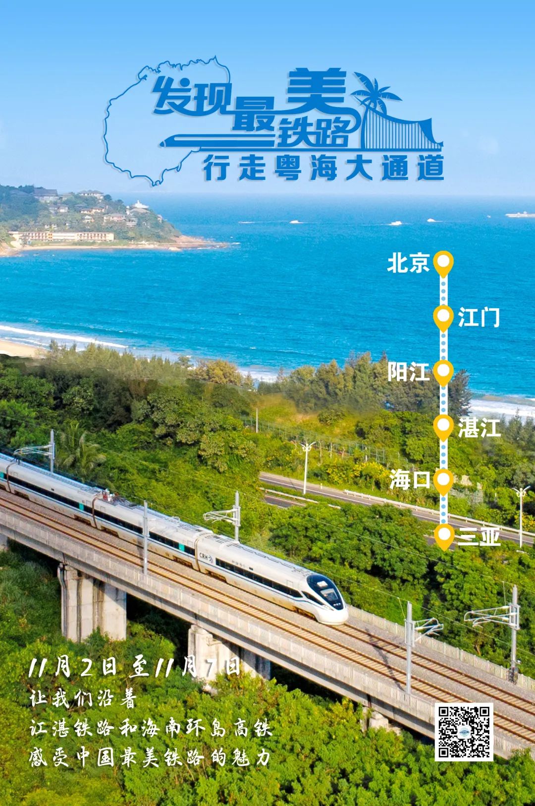 11月2日至7日,由中央网信办网络评论工作局、中国国家铁路集团有限公司宣传部联合举办,铁路文工团全程参与,中国铁路广州局集团有限公司党委宣传部协办的“发现最美铁路·行走粤海大通道”网络宣传活动即将启程。