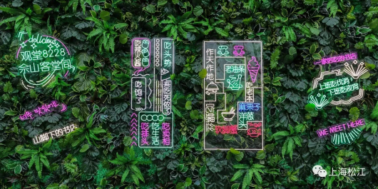 走在门口就会被网红墙所吸引,各种美食灯牌氛围感十足。