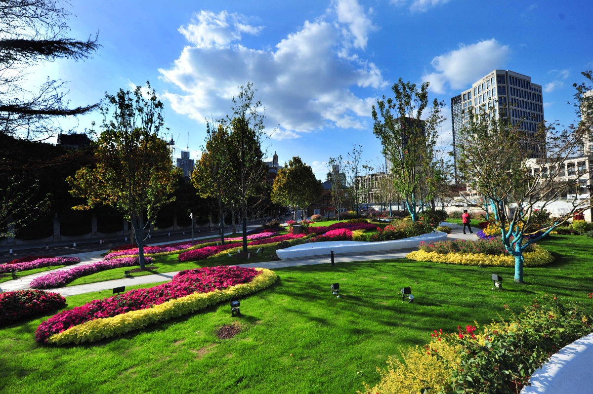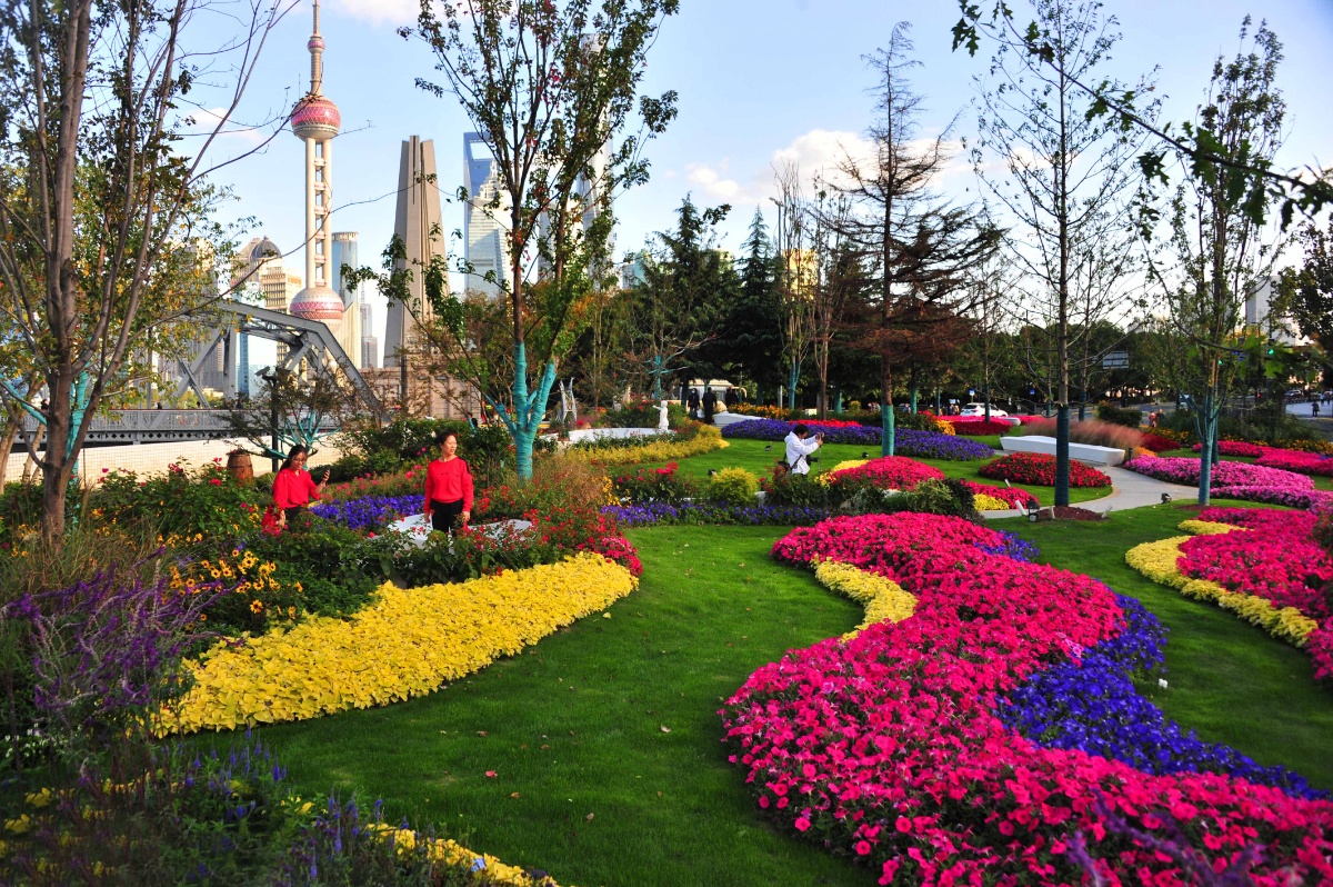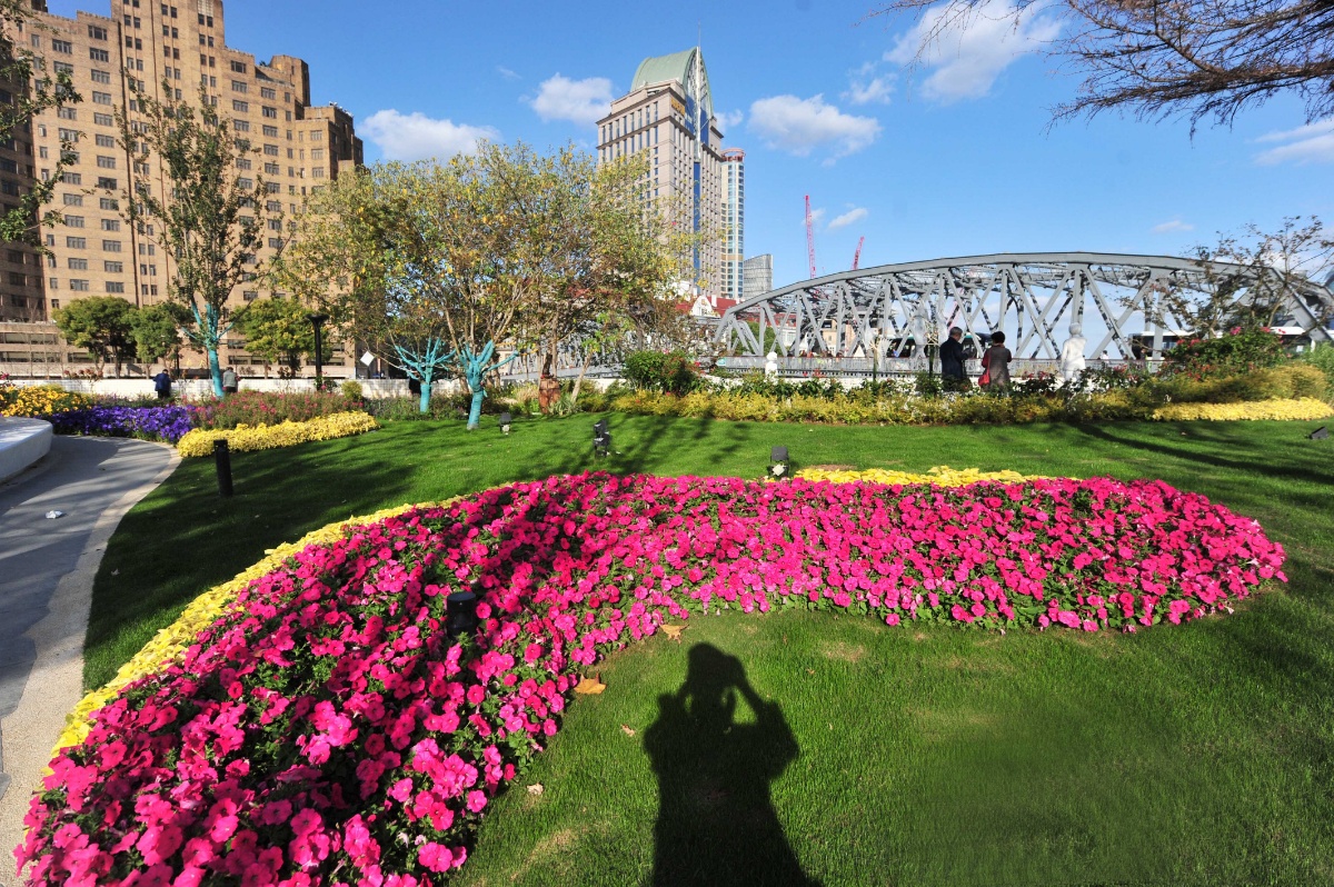 上海最美花园“苏河之门”点缀外滩 粉黛乱子草等鲜花应有尽有