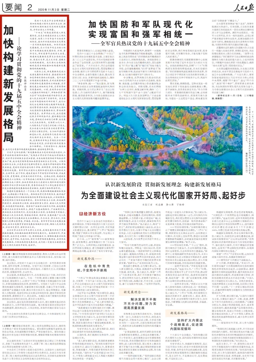 《人民日报》推出系列评论员文章,带你一起学习党的十九届五中全会精神。