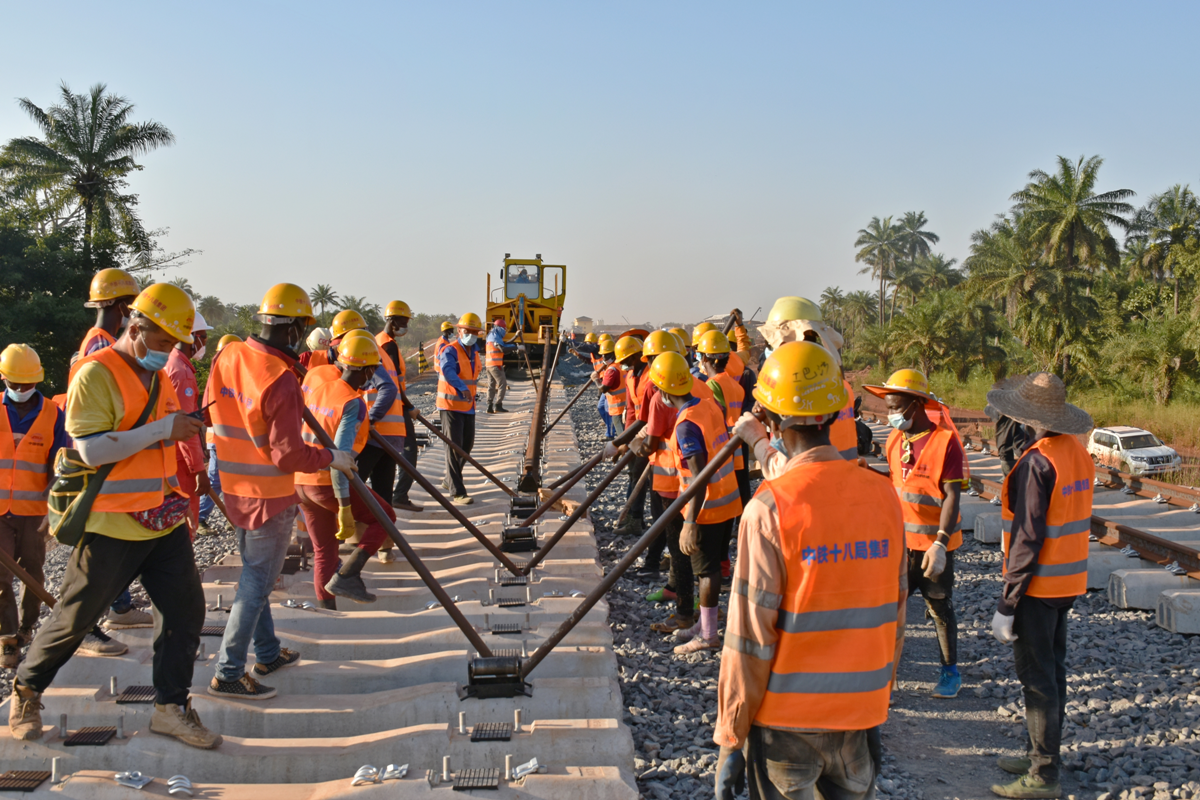 据中铁十八局项目负责人介绍,项目上场以来,克服了几内亚雨季长,当地物资匮乏,交通运输难等不利影响。特别是今年3月项目大干期间,新冠疫情蔓延,国内人员和设备无法按时到达几内亚,为保证工期节点任务,项目部优化施工方案和资源调配,积极协调当地设备、物资材料进场,全力推进各项施工生产工作,创造了单日施工土石方5万方,单次爆破路基10万方的施工纪录,提前30天完成线下工程,为线上架梁、铺轨及附属设施施工提供了坚实保证。