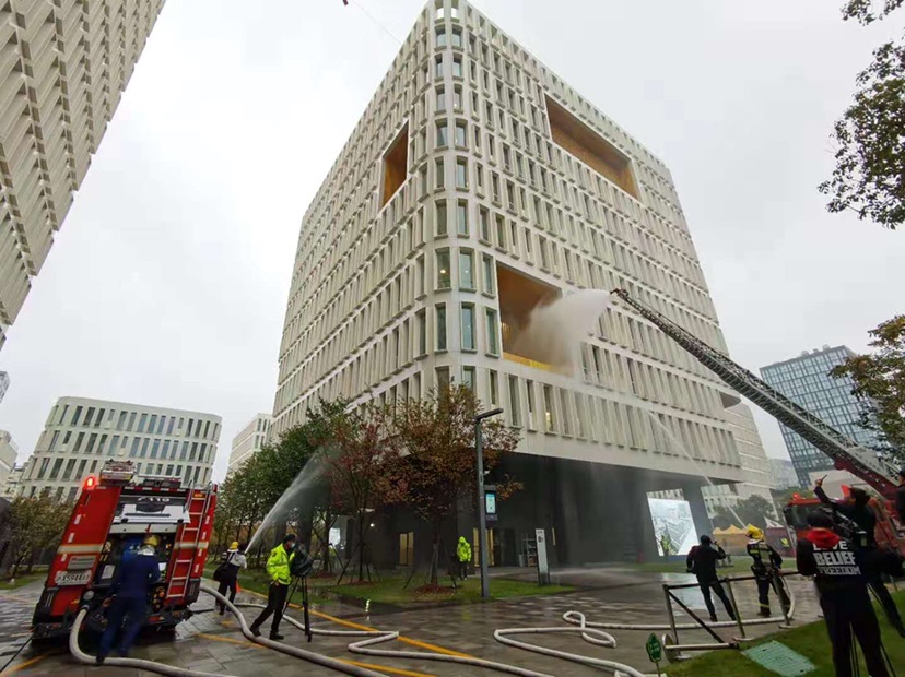 活动在一场大型消防综合疏散演练下拉开序幕,演练中展现了徐汇区城市运行管理中心“一网统管”平台对于智慧消防指挥体系与企业单位协同起到的巨大作用。同时,演练现场展示了徐汇消防最新的“三幕”系统——“水幕”系统、“天幕系统”、“墙幕”系统。