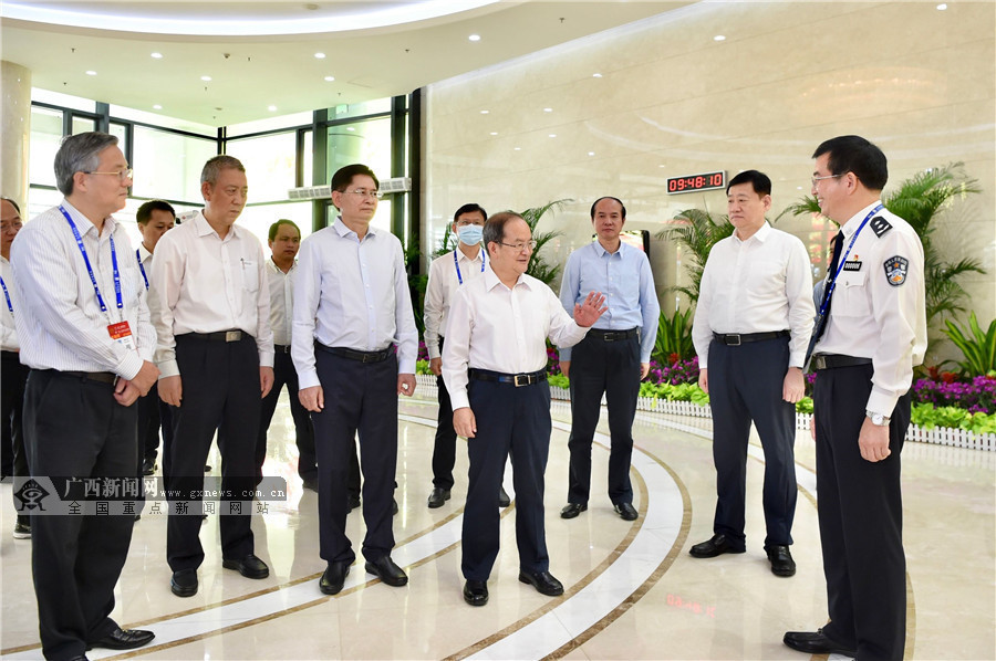 鹿心社、蓝天立来到南宁国际会展中心,实地检查指导东博会、峰会各项筹备工作情况。邓华 摄