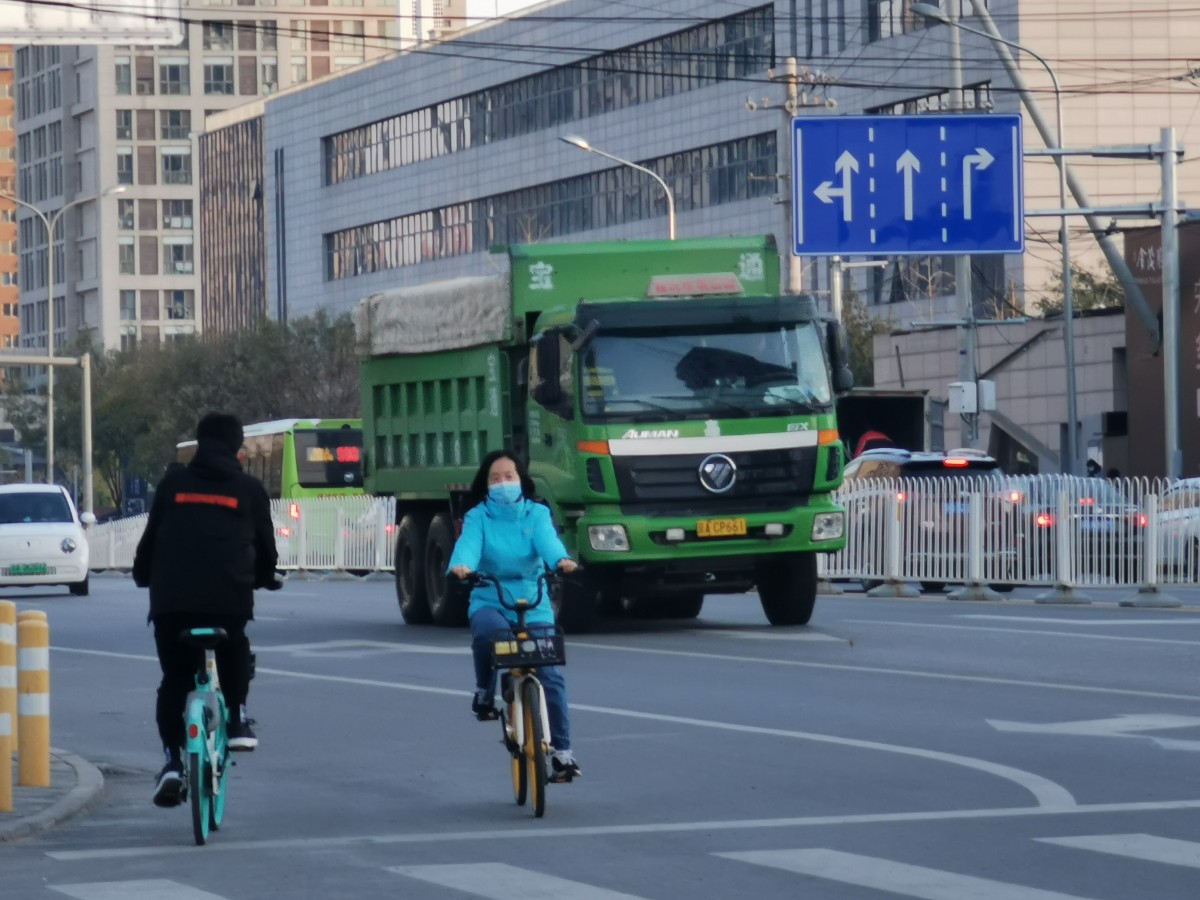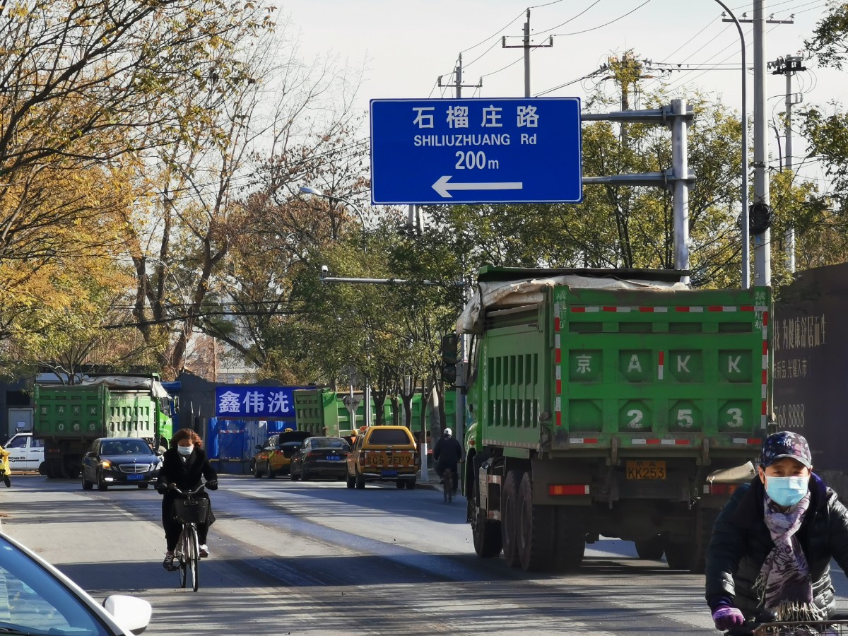 (即便是白天,宋庄路周边的渣土车也往来频繁。)