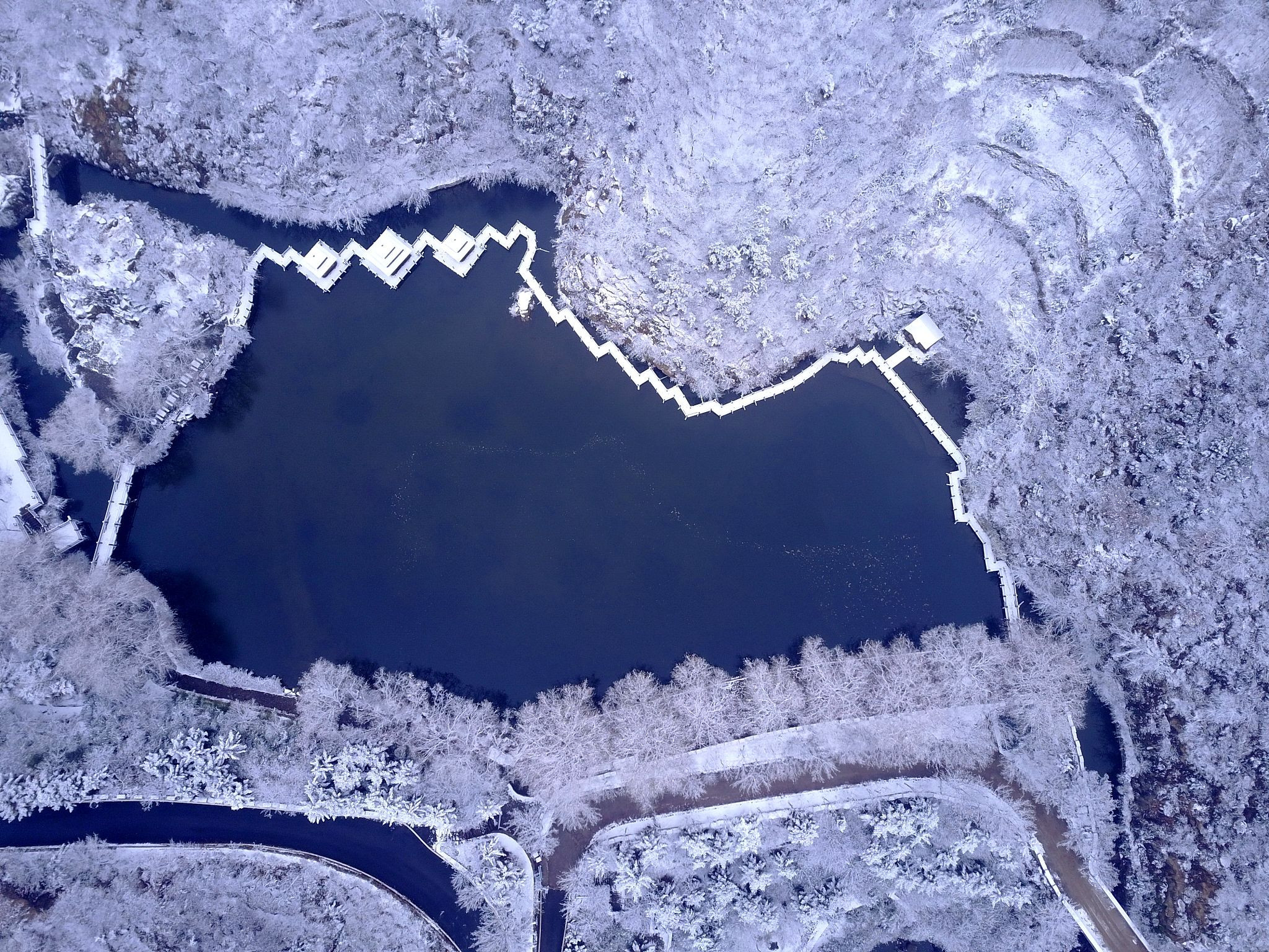2020年12月2日,济南南部山区降下大雪,九如山景区树木变琼枝,山林变雪原,整个山体银装素裹,美如仙境。(来源:视觉中国)