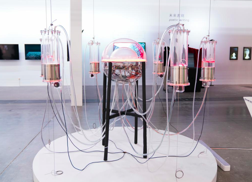 如果说传统油画、版画、雕塑教育依然强盛,那么数字媒体、机械动力装置等多媒体艺术也正在崛起。中国美术学院的展览《未來书写:姚大钧 + Open Media Lab》,就呈现了一个正在“逼近”的未来。