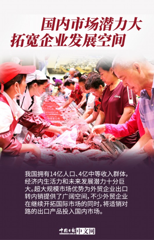 今年以来,受疫情影响,中国外贸企业发展面临前所未有的困难和挑战。中国提出加快构建以国内大循环为主体、国内国际双循环相互促进的新发展格局。不少外贸企业在继续开拓国际市场的同时,将适销对路的出口产品投入国内市场。此外,中央和地方及时推动出台一系列稳外贸政策措施,为企业纾困解难,稳住企业信心。政府、行业、企业形成强大合力。中国外贸企业迎难而上,在市场压力下茁壮成长,外贸主体规模不断壮大。