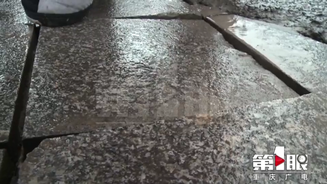 广场上有不少深色地砖,都是修补过的,但是门口那里因为经过车辆次数太多,损坏频繁。记者采访的时候,华岩旅游景区的一位工作人员来到现场,对受伤的曾阿姨进行安抚,表示会对此事负责。