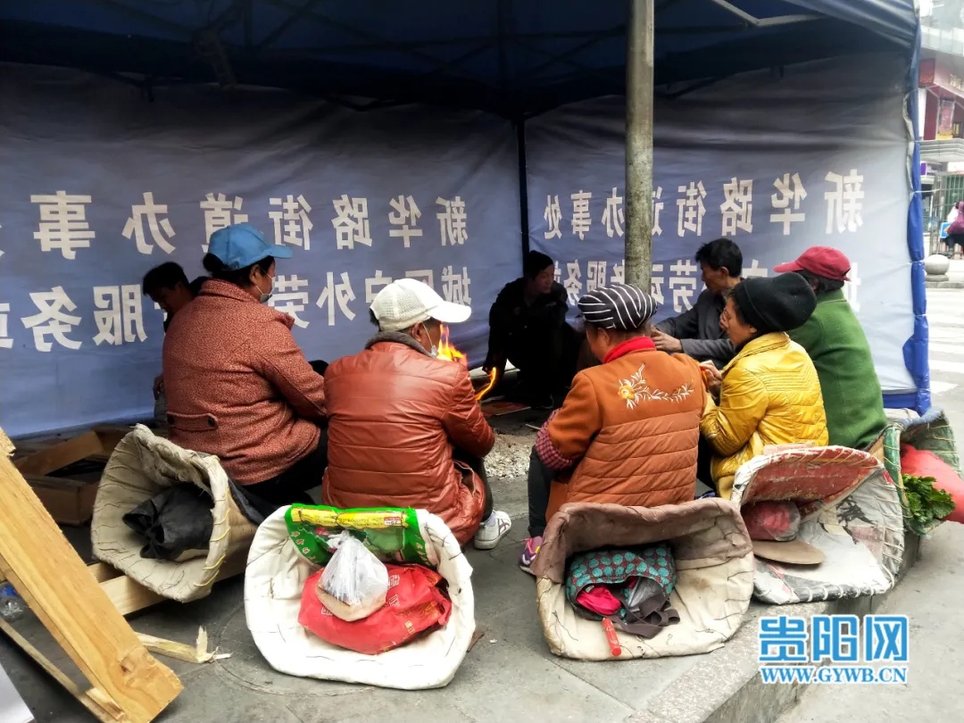 蒋兵说,他老家在织金,来贵阳务工已10多年,以前没有帐篷时,下雨天不能出工,就算烧火取暖,由于四周透风,也不是很暖和。最近几年,每到冬天,相关部门都会搭建类似的取暖帐篷,让他们能有地方御寒。