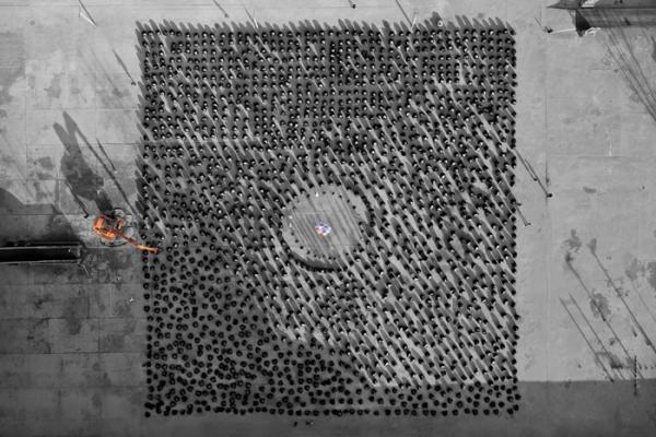 《2020的心愿》装置作品是艺术家对天地的感恩,是艺术家期盼天地人和谐共生的美好愿望,是艺术家对“天人合一”传统价值观的诠释。作品内容由物质、能量、信息三要素构成:第一要素“物质”——2020个环保袋;第二要素“信息”——环保袋上的文字信息,旧事已逝,未来可期;第三要素“能量”——充着氦气的彩色气球,等待一飞冲天。作品尺寸70米x70米,从空中俯瞰,宛如天坛圜丘的外方内圆:由志愿者们手拉手构成内圆,艺术家于快成手握象征彩云的气球站在内圆中心,与天地对话,向天地许愿。我们选择相信美好与光明,把美好的心愿呈现给世界,期待繁荣安宁的世界。