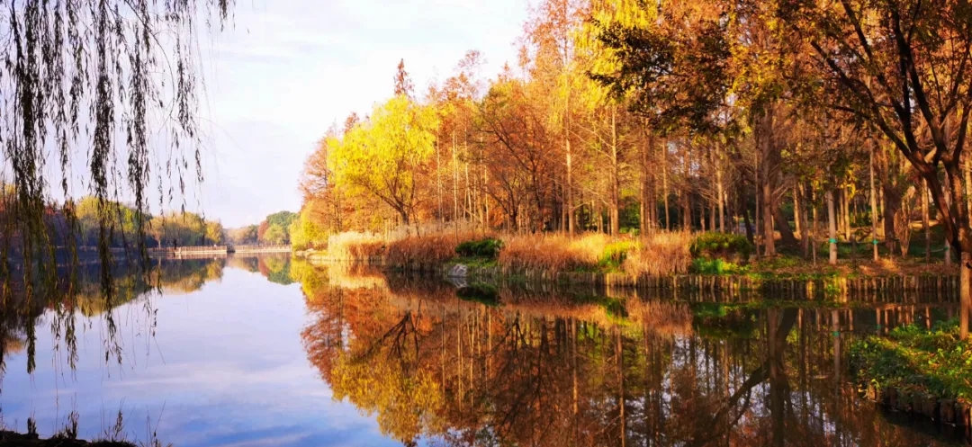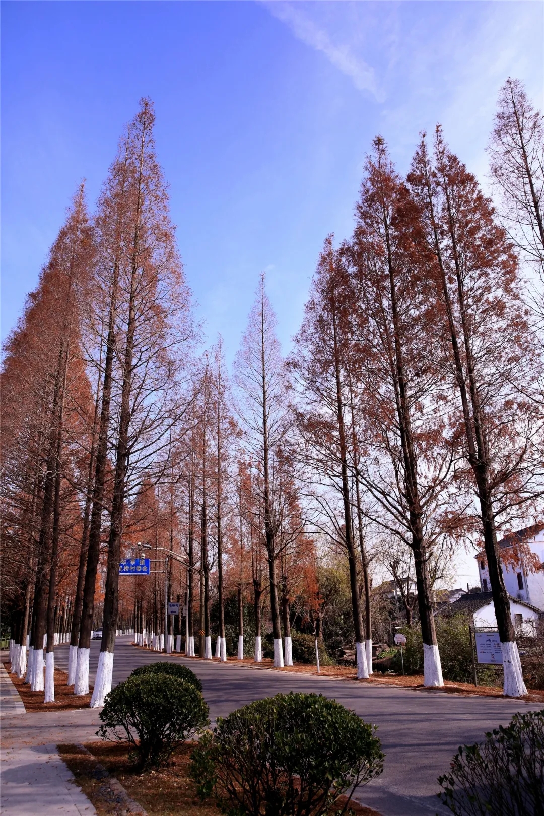 “藏”在外冈这里的水杉林,眼下正是最美的时候。挺拔的水杉树一改平日的葱郁,完成翠绿、金黄、橘红的渐变。身处其中,那份饱满的诗意,总让人浮想联翩。