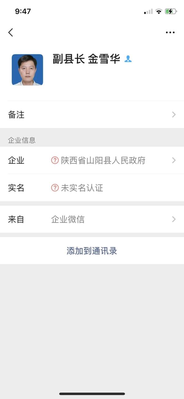 值得一提的是,企业微信上,该诈骗账号显示的机构是陕西省山阳县人民政府。