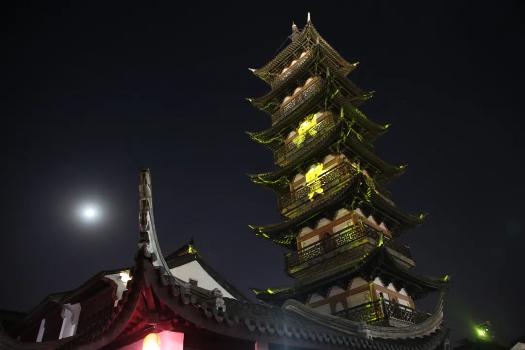 法华塔又名金沙塔,是嘉定的历史文化地标,始建于南宋开禧年间,历经数次修缮,与州桥老街形成了一塔、二河、三街、四桥融为一体的江南水乡佳景。