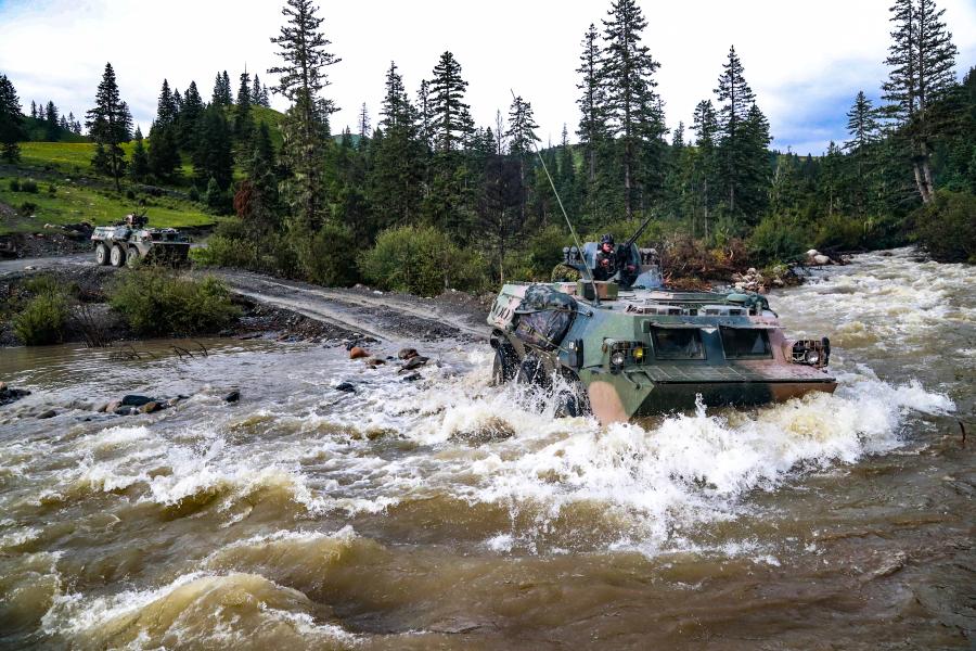 陆军第83集团军某旅红一连战车奔赴演习场(2019年8月7日摄)。新华社发(张增岩 摄)
