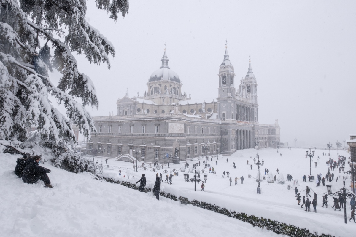 西班牙马德里遭遇50年来最强暴雪 积雪厚度超50厘米