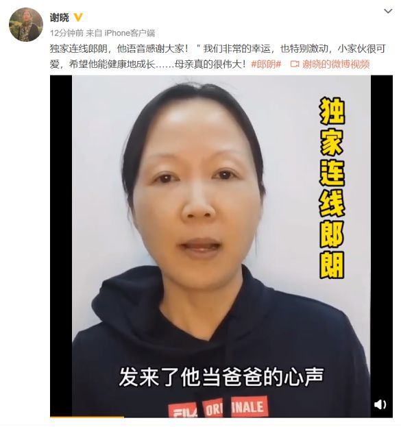 资深媒体人谢晓老师晒视频称采访了新晋奶爸郎朗,郎朗语音感谢大家:“我们非常的幸运,也特别激动,小家伙很可爱,希望他能健康地成长,母亲真的很伟大!”