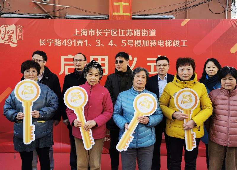 长宁江苏路街道一老小区4台电梯同日竣工
