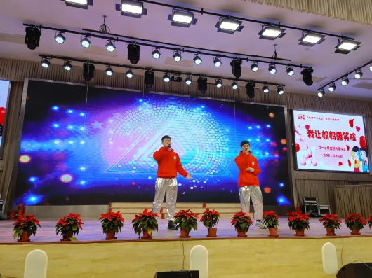 伴随着动人的旋律,打一的男教师们登上了舞台,表演歌舞《听妈妈的话》,向母亲,以及女教师们献上节日祝福。
