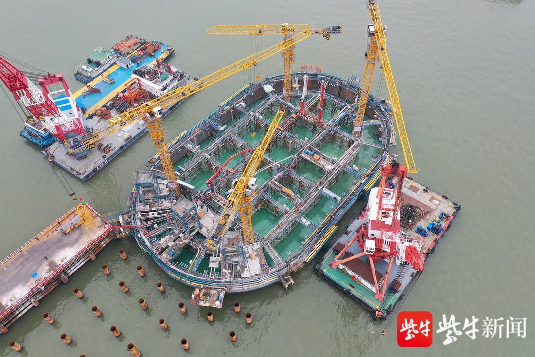 常泰长江大桥主塔基础5号墩钢沉井完成封底混凝土浇筑 即将转入上部结构施工
