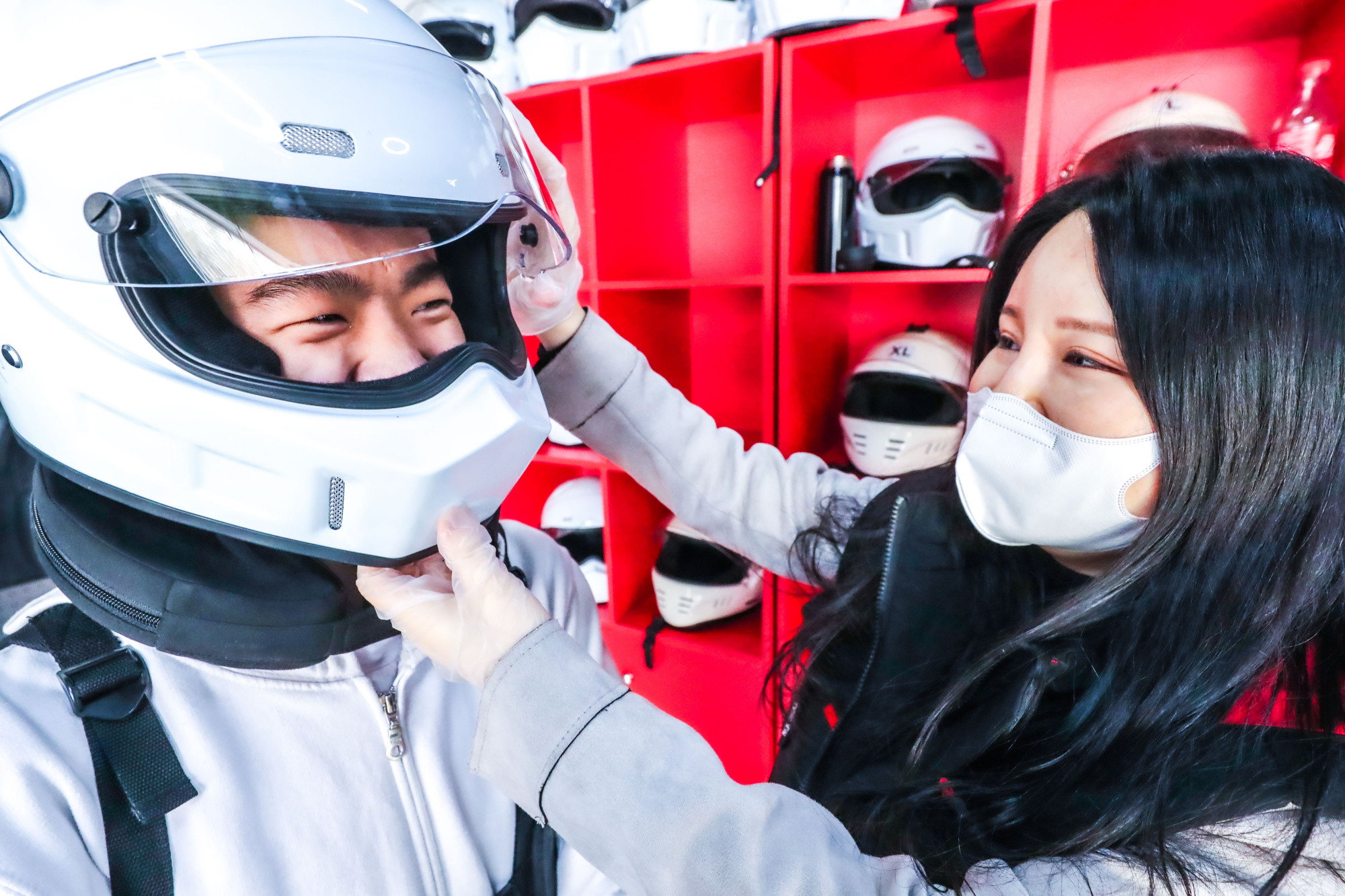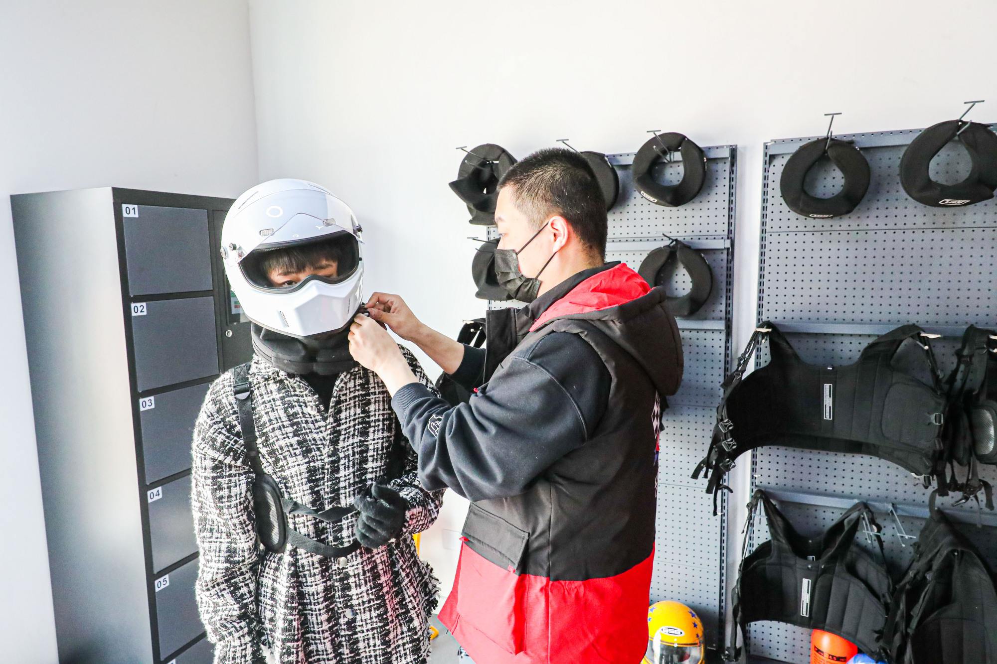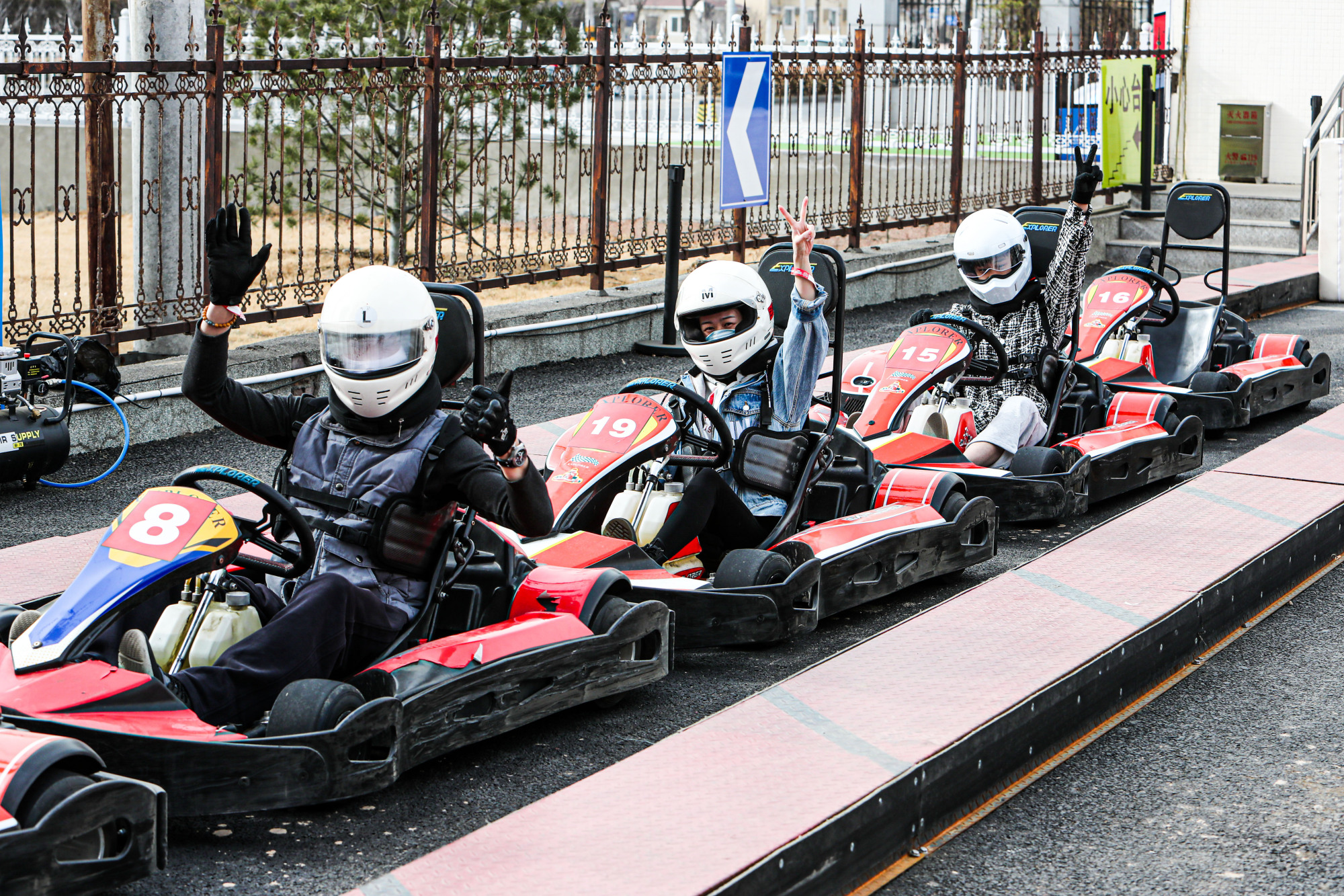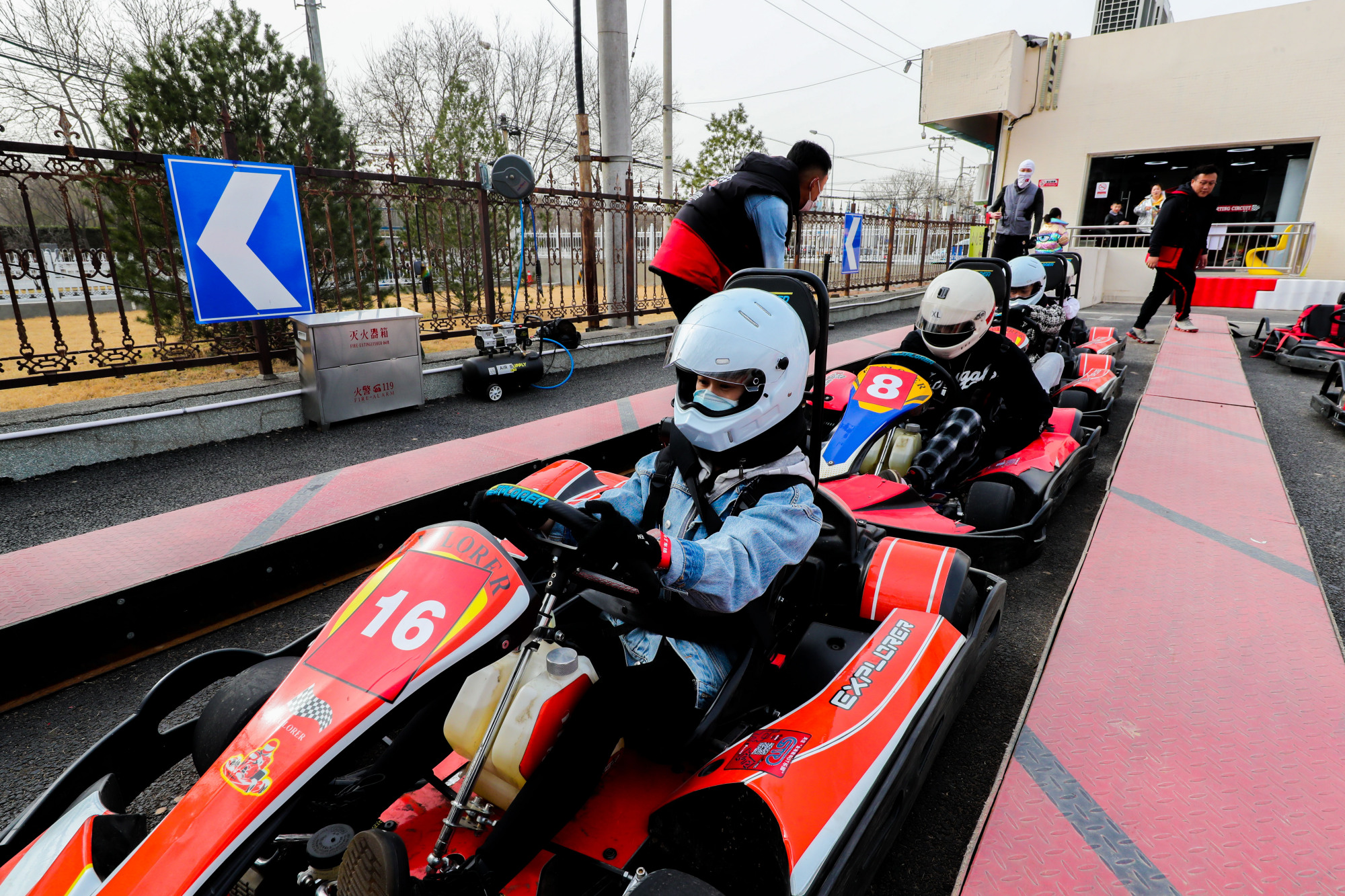 “右脚油门、左脚刹车,大家在赛道上遇到任何问题都不要惊慌下车,我们的工作人员会帮助大家解决。”室外车场里,王教练一边给前来体验的客人讲解注意事项,一边仔细检查大家的头盔护颈等装备。“自11月7日开业以来,人越来越多了。因为卡丁车比一般轿车座椅位置低,行进过程中带来的视觉冲击感会更快、更刺激,深受年轻人的喜爱。”王教练说,“我们也会定期对工作人员开展安全技能培训,保障客人在体验过程中的安全。”