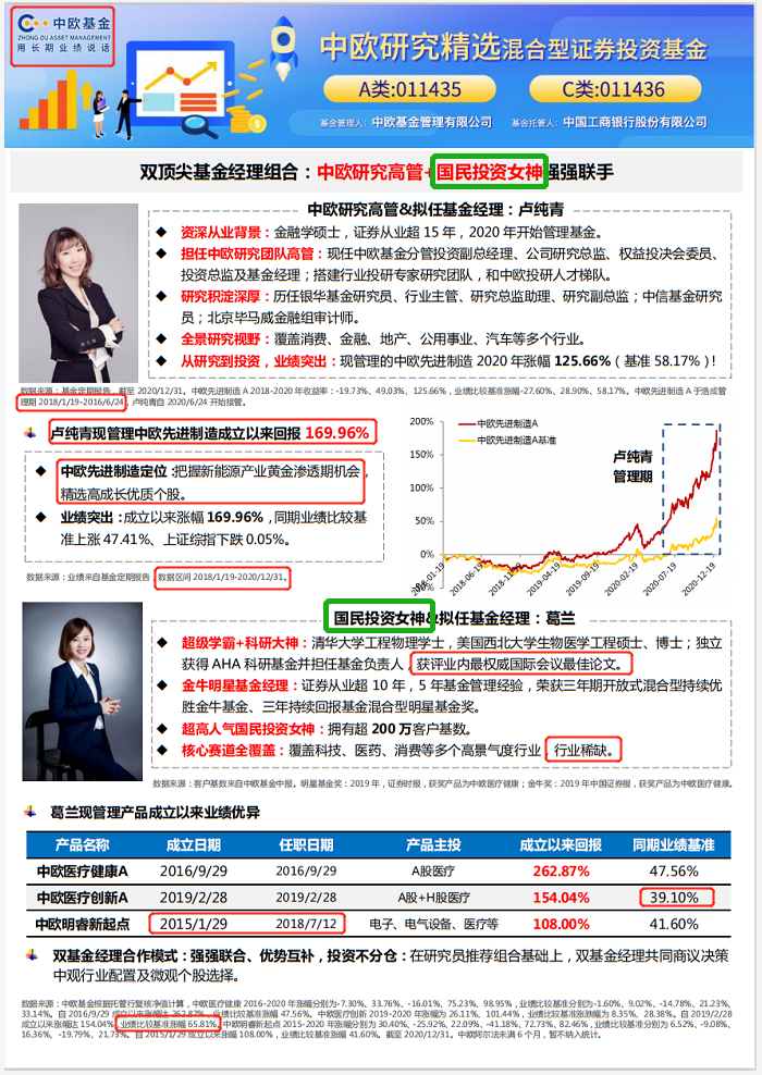 “明明卢纯青只管理了半年,却用产品成立以来汇报作为宣传重点,是不是有误导投资者之嫌?而且截至3月18日,天天基金上显示卢纯青管理中欧先进制造的任职回报为60.62%,这与材料里截至2020年12月3日的169.96%收益差异太大。”上述业内人士补充到。