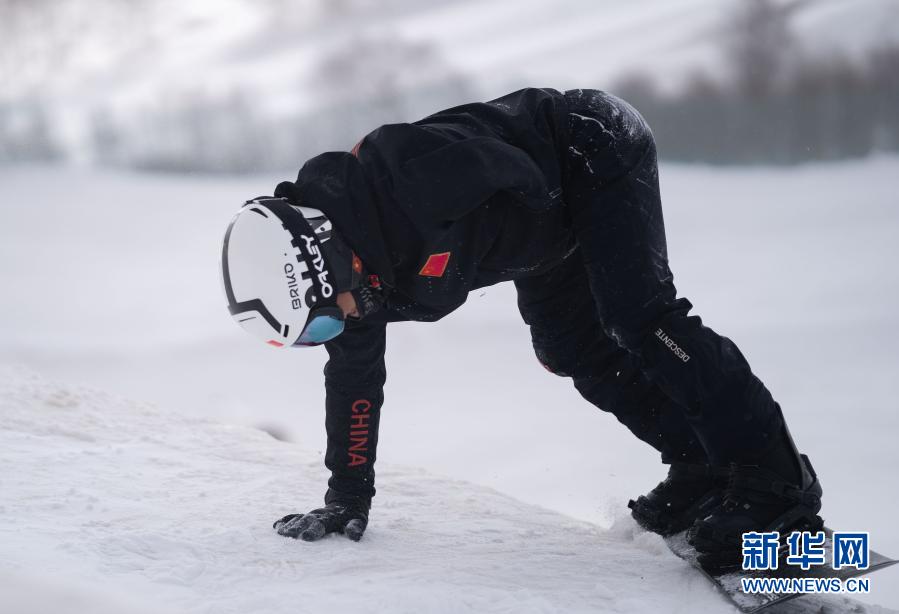 3月20日,冬残奥会国家集训队单板滑雪运动员武井松在冬残奥会训练基地训练。新华社记者 才扬 摄